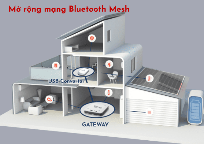 - Mở rộng mạng Bluetooth Mesh : Giúp tăng cường tín hiệu đến các thiết bị ở xa bộ điều khiển trung tâm. Giúp các công trình lớn hoạt động ổn định.